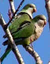 the Monk Parakeet. We see them flocking together in noisy groups. They