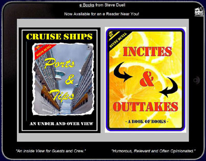 22 September '12 - Well my reputation as One Busy Guy is still secure! Writing that first eBook was quite an adventure. I struggled with spelling and phrasing and grammar for some 26K words. I was happy to have it finished and published and then realized it wasn't enough. There is much more to me than a mere person who has worked on ships at sea! I really needed another book to present other more interesting bits about an unconventional life experience that includes scuba diving, windsurfing, hiking through the rainforest and of course my Andy Rooney style observations. That's why I created a second eBook entitled: 'Incites and Outtakes - A Book of Books -' Yeah.